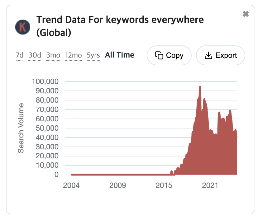 - Trend Data : 트렌드 데이터는 지난 12개월 동안 해당 키워드에 대한 실제 검색량으로 차트로 표시되나, 이 데이터를 다운로드하면 지난 12개월 동안의 12개 값을 각각 볼 수 있어 키워드의 추세와 계절성을 판단하는 데 매우 유용함